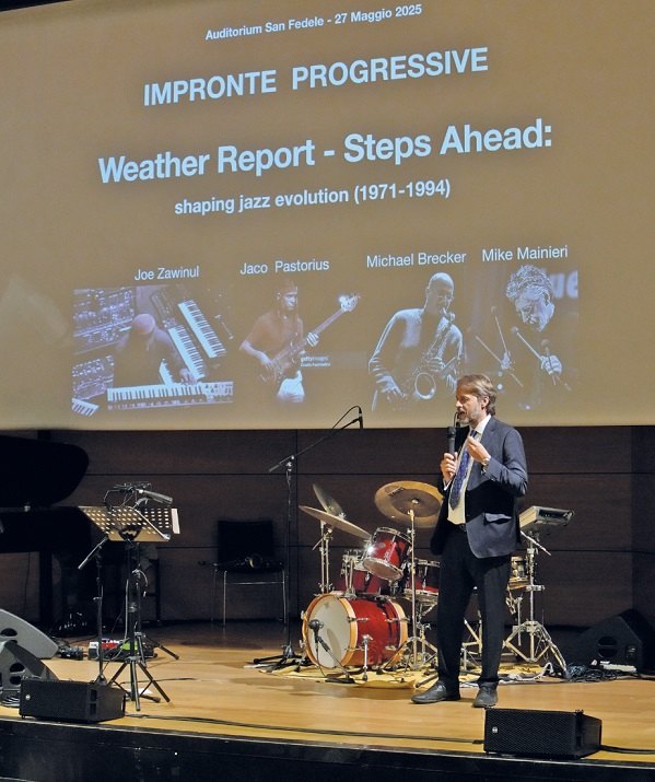All’ora stabilita la Sala era piena di colleghi entusiasti, con un nutrito contributo di presenze femminili, e durante il concerto c’è stata viva partecipazione con molti applausi sullo sfondo di un programma di brani tagliato sul genere “fusion” in omaggio a due gruppi americani degli anni ’70 del secolo scorso, i Weather Report e gli Steps Ahead, che hanno fondato il loro repertorio originale proprio su questo genere musicale (per ulteriori dettagli potete consultare il mio articolo Concerto di Primavera sulle note del Jazz pubblicato su questa Rivista).