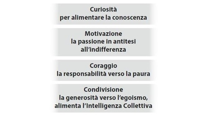 Si è anche detto che la Creatività ha come presupposto la Curiosità, la Motivazione, il Coraggio, la Condivisione. In che senso tutto questo?