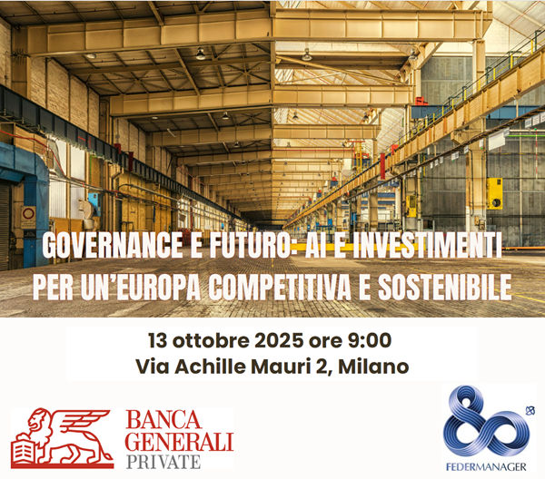 Conferenza Federmanager il 13 ottobre 2025 ore 9:00 a Milano nell'HUB di Banca Generali Private, in Via Achille Mauri 2