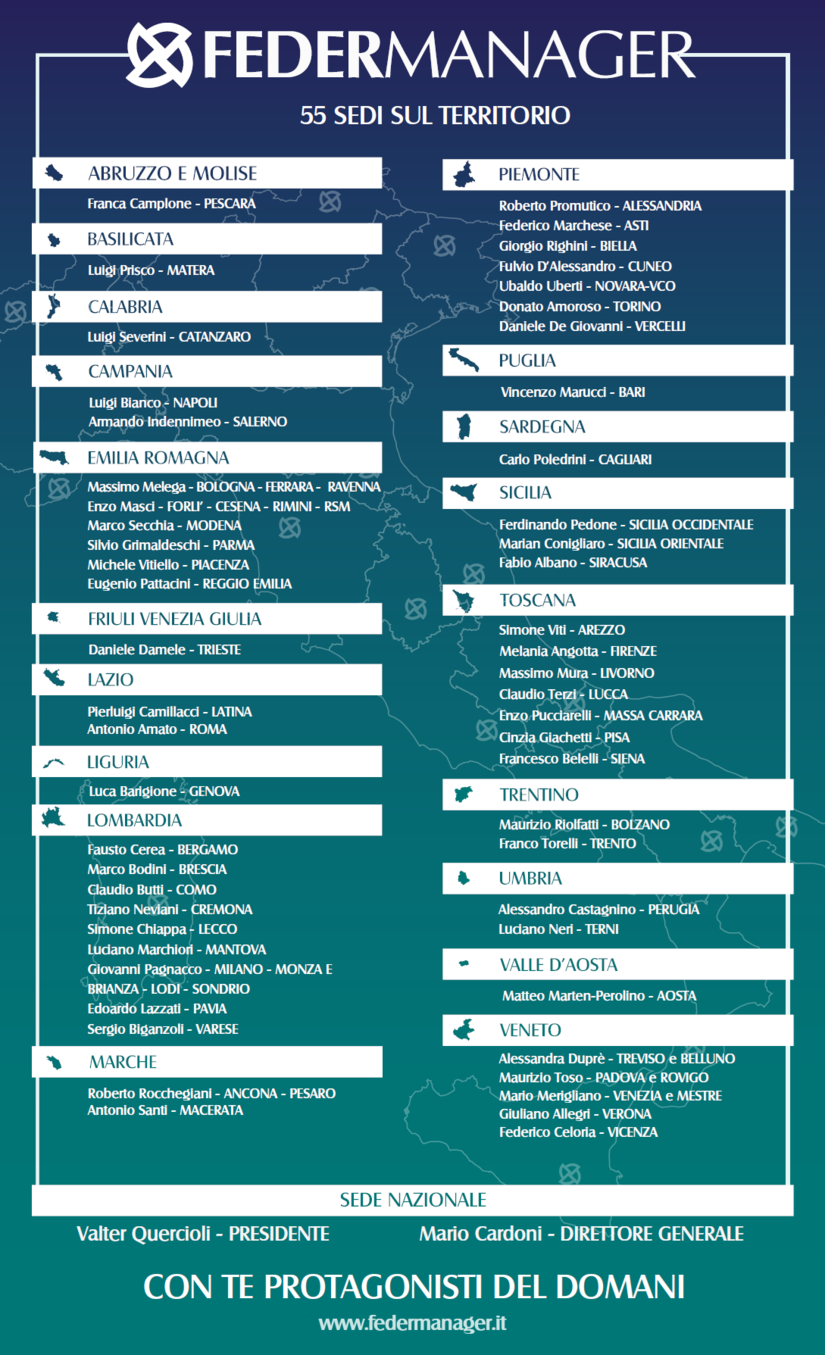 Scopri tutti i servizi:clicca Associazioni Federmanagere vieni nella sede più vicina.Ti aspettiamo!