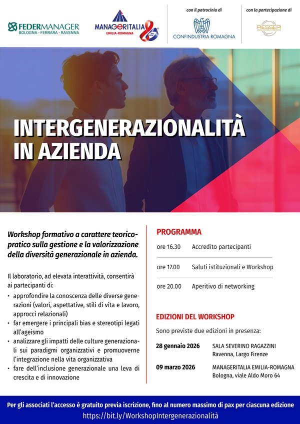 Il 28 gennaio scorso, alla Sala Ragazzini di Largo Firenze a Ravenna, si è svolto il workshop Intergenerazionalità in azienda.