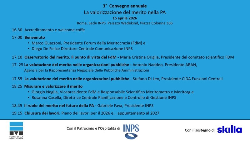 3° Convegno annuale del Forum della Meritocrazia - 15 aprile 2026 - Roma, Palazzo Wedekind - Sala Renato Angiolillo – Piazza Colonna, 366