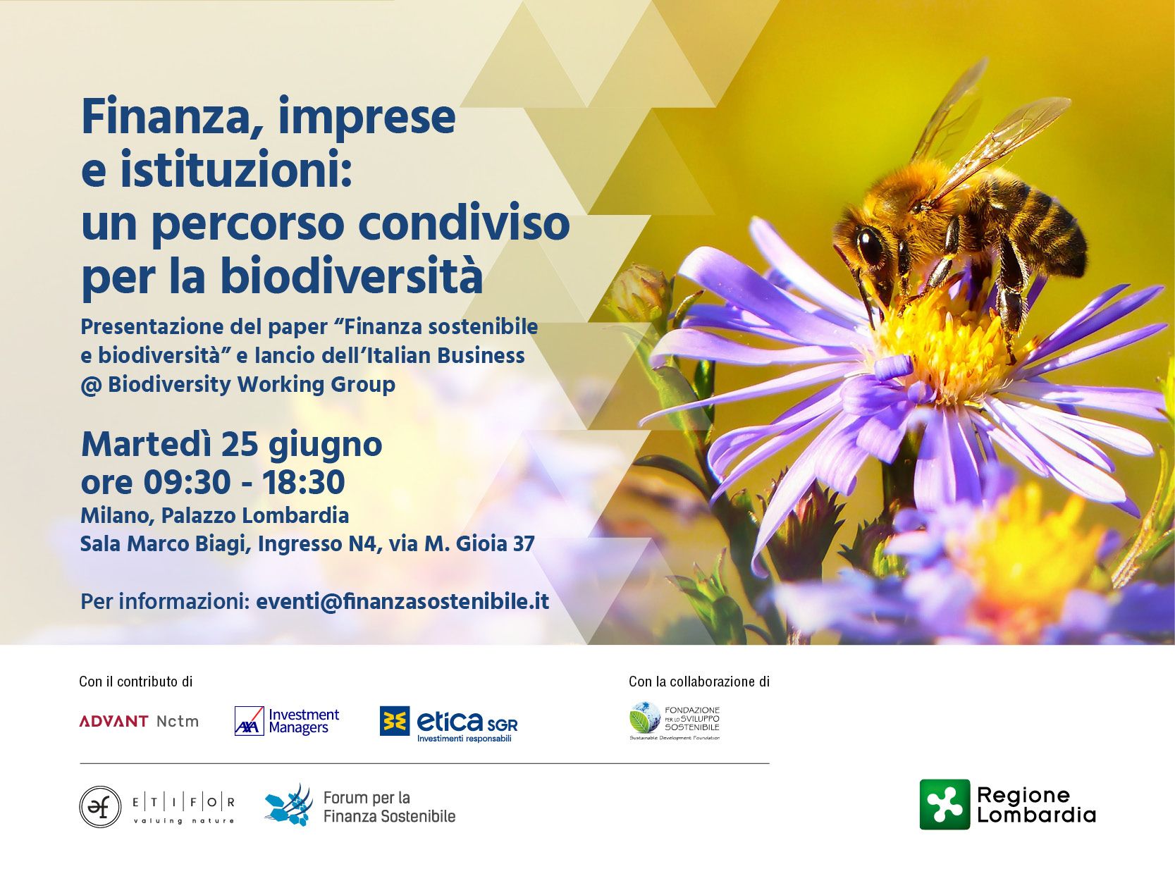 La mattina sarà dedicata a “Tutelare la biodiversità: il ruolo chiave della finanza sostenibile”, con la presentazione del paper “Finanza sostenibile e biodiversità”, frutto del Gruppo di lavoro avviato dal Forum per la Finanza Sostenibile con i propri Soci.