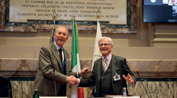 Il passaggio del testimone tra il Presidente uscente Elio Giovati e il neoeletto Andrea Peressutti
