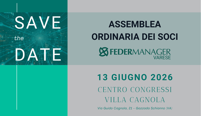 Gli associati Federmanager Varese si incontreranno nel centro congressi Villa Cagnola il prossimo 13 giugno per condividere le attività e i risultati della gestione 2025 e le iniziative 2026