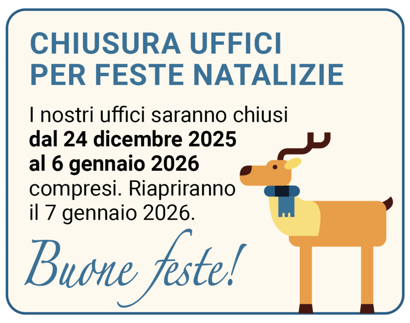 I nostri uffici saranno chiusi dal 24 dicembre 2025 al 6 gennaio 2026