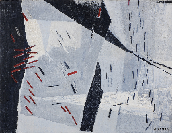 È necessario quindi mettersi in silenzio e pensare alla storia del Novecento, ai drammi e alla volontà di ricominciare di persone e popoli che in un mondo sempre più globale cercavano con tutte le forze il nuovo senza perdere il valore del passato. Eredi non solo di distruzioni, ma anche e soprattutto di valori civili, sociali e artistici nella irripetibile civiltà della cultura occidentale. Bice Lazzari inizia il suo cammino artistico nella Venezia di Virgilio Guidi e frequenta i giovani artisti che, con illuminata visione, stavano costruendo un nuovo linguaggio poetico di incisiva parola, spesso cruda come la terra del Carso di Ungaretti, e forme essenziali di architettura libera nello spazio a cui guardava Carlo Scarpa. Un’arte a tutto campo – come è stato per la musica nell’esperienza della Seconda Scuola di Vienna e per la pittura della forma – non forma nelle varie espressioni di Kandinskij e di Carrà – che testimoniava un intimo desiderio di raggiungere un punto di non ritorno dove una linea potesse lasciare traccia sul quadro come pura immagine di sé stessa. Già nel 1925, mentre ancora dominava la figurazione, Bice Lazzari traccia un disegno a matita su carta detto Astrazione di una Linea N. 1 che in modo sorprendente anticipa la sua strada finale di pittrice del Segno, che solo al termine degli anni ’60 diventerà il carattere evidentissimo del suo dipingere.