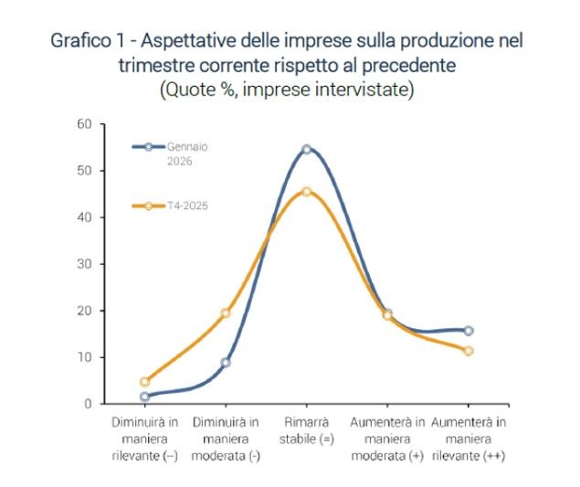 Secondo le aspettative delle grandi imprese industriali associate a Confindustria, la produzione è attesa stabile in gennaio, ma con un quadro in miglioramento rispetto alla fine del 2025. Tale miglioramento è riconducibile alla riduzione della quota di imprese che si attendono una produzione in calo, a favore delle imprese che credono che la produzione rimarrà stabile o crescerà