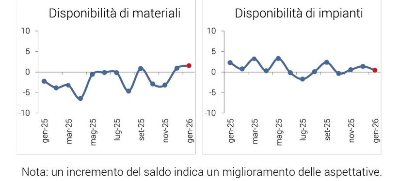 - Il giudizio degli industriali sulla disponibilità degli impianti peggiora nella rilevazione del mese corrente (+0,4% dopo il +1,4% di dicembre).