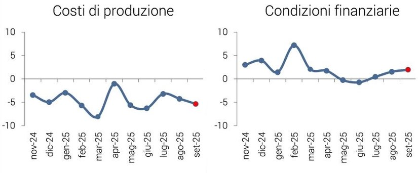- Negativo il saldo relativo ai costi di produzione nella rilevazione di settembre, in peggioramento rispetto al mese precedente (-5,3% da -4,2%).