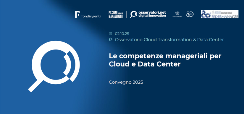 Per questo motivo, Fondirigenti, attraverso il progetto Data Center e Cloud: identificazione delle competenze manageriali per la gestione di infrastrutture e servizi per la digitalizzazione, promosso da Assolombarda e ALDAI e realizzato dall’Osservatorio Cloud Transformation del Politecnico di Milano, ha voluto definire un framework per l’auto-assessment dei manager interessati a evidenziare eventuali gap di competenze negli ambiti Cloud e Data Center.