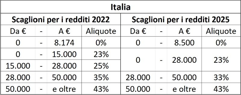 Riprendiamo dopo quasi tre anni l'articolo sulle modifiche introdotte dal Governo Draghi, dal titolo "Riforma fiscale: quanto gli italiani pagano più dei francesi?", senza riportare i commenti dell'analisi, ancora accessibile cliccando il titolo, sulle differenze con le imposte sui redditi d'oltralpe, inferiori alle nostre per tutte le fasce di reddito, con la soglia della maggiore aliquota oltre i 156.244 euro (considerati l'inizio della ricchezza) tre volte superiore ai nostri 50mila euro e una tassazione vantaggiosa per le famiglie a sostegno della natalità.
