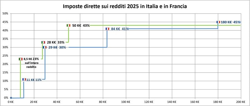 La riduzione dell'imposta sui redditi a confronto con la tassazione in Francia
