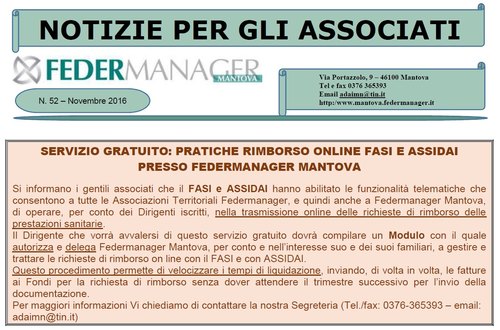 Leggi »A seguito di quanto pubblicato nel numero di gennaio 2017 a pagina 12, completiamo l'informativa di quanto emerso nell'incontro del 23 novembre 2016 tenutosi in ALDAI.